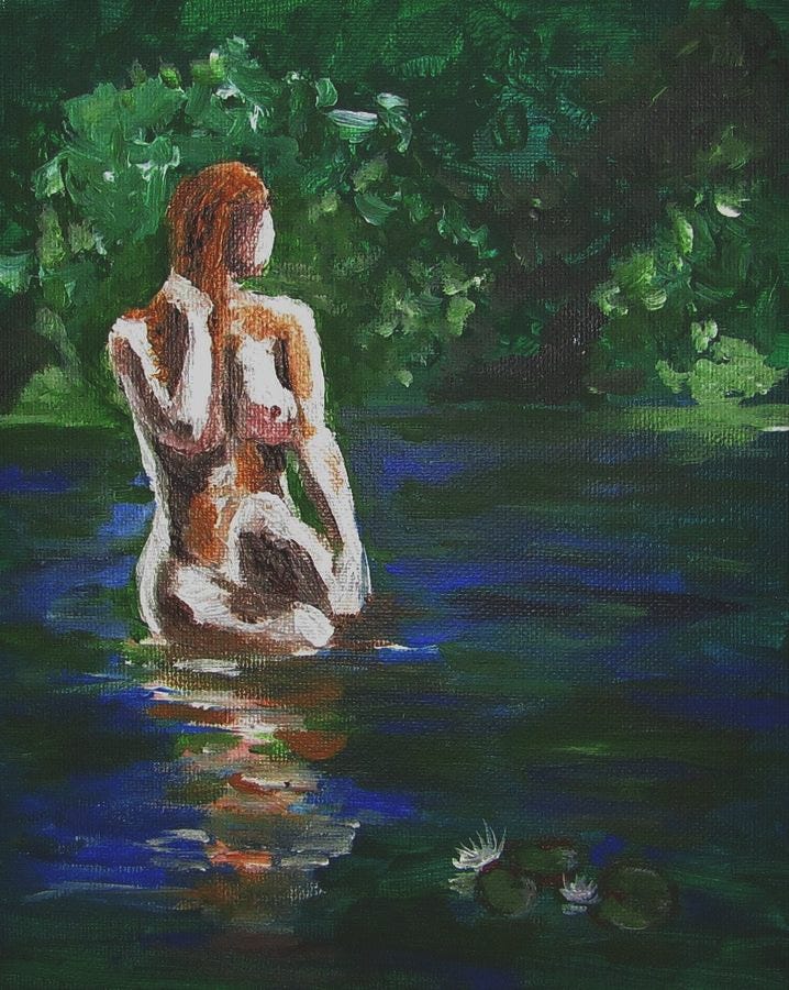 I was a boy — a teenager, and I used to go down to the creek at the end of the road, over the small hill through the trees, to sit, fish, write, or dream. In the magnolia-scented air, she used to come and bathe alone sometimes, and from the shadows of the trees, she was sensuality itself. Among the pangs I felt, of fantasy, there grew also the yearning of love.